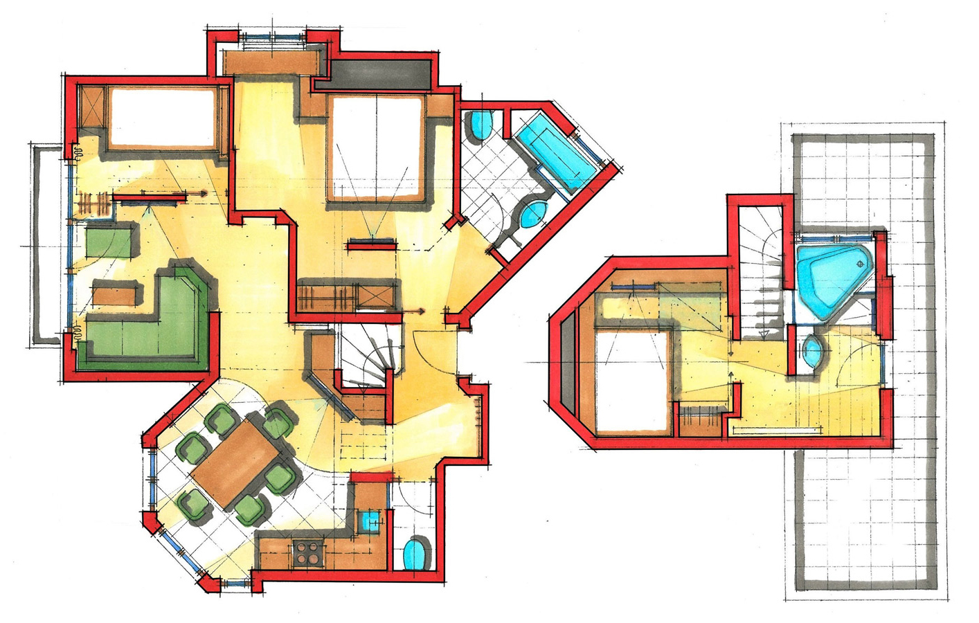 2 singlebed rooms sep. WC